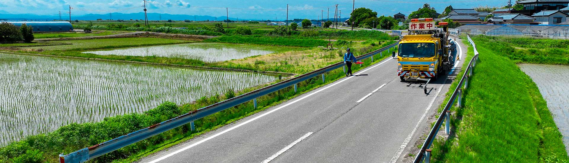 新交ロードの採用ページをご覧いただき、ありがとうございます。私たちは新潟を拠点に、路面標示・標識・防護柵・舗装、橋梁の塗装や補修、維持管理など、地域の道路インフラを支える事業を幅広く展開しています。街に成果が残り、地域の安全と快適につながることが私たちの誇りです。